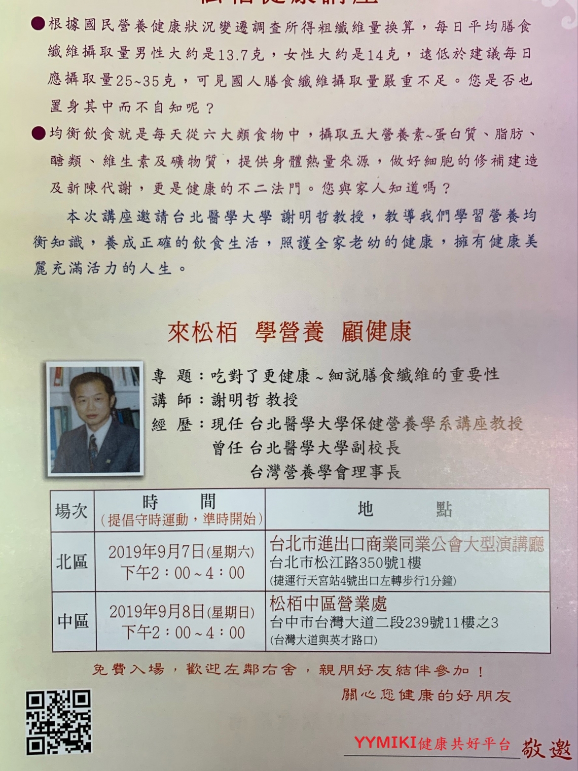 課程名稱:吃對了更健康~細說膳食纖維的重要性