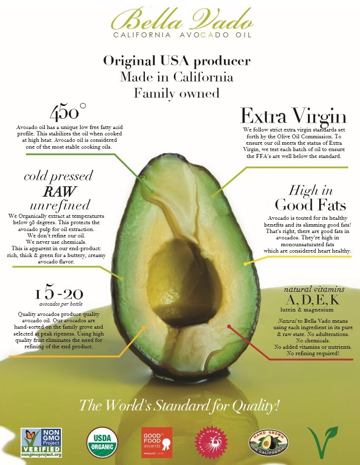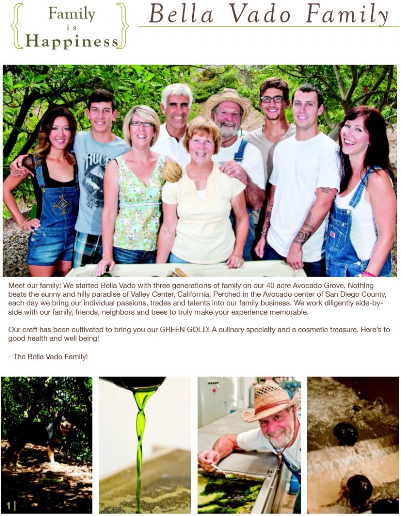 Bella Vado梨油產品由在加州聖地亞哥北部的Cid da Silva家族配送至美國各地,該地區被稱為美國的酪梨之都。